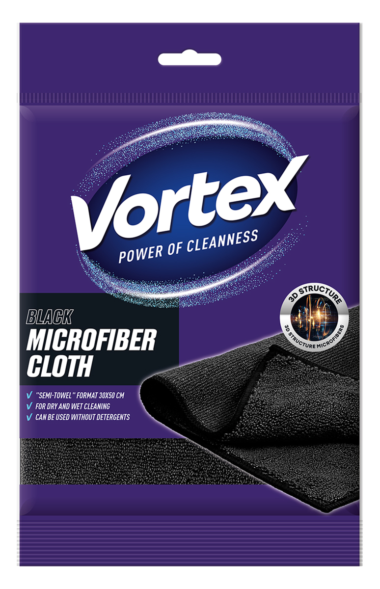 Ściereczka z mikrofibry VORTEX, półręcznik, 30x50cm, czarna, Akcesoria do sprzątania, Artykuły higieniczne i dozowniki NOWOŚĆ