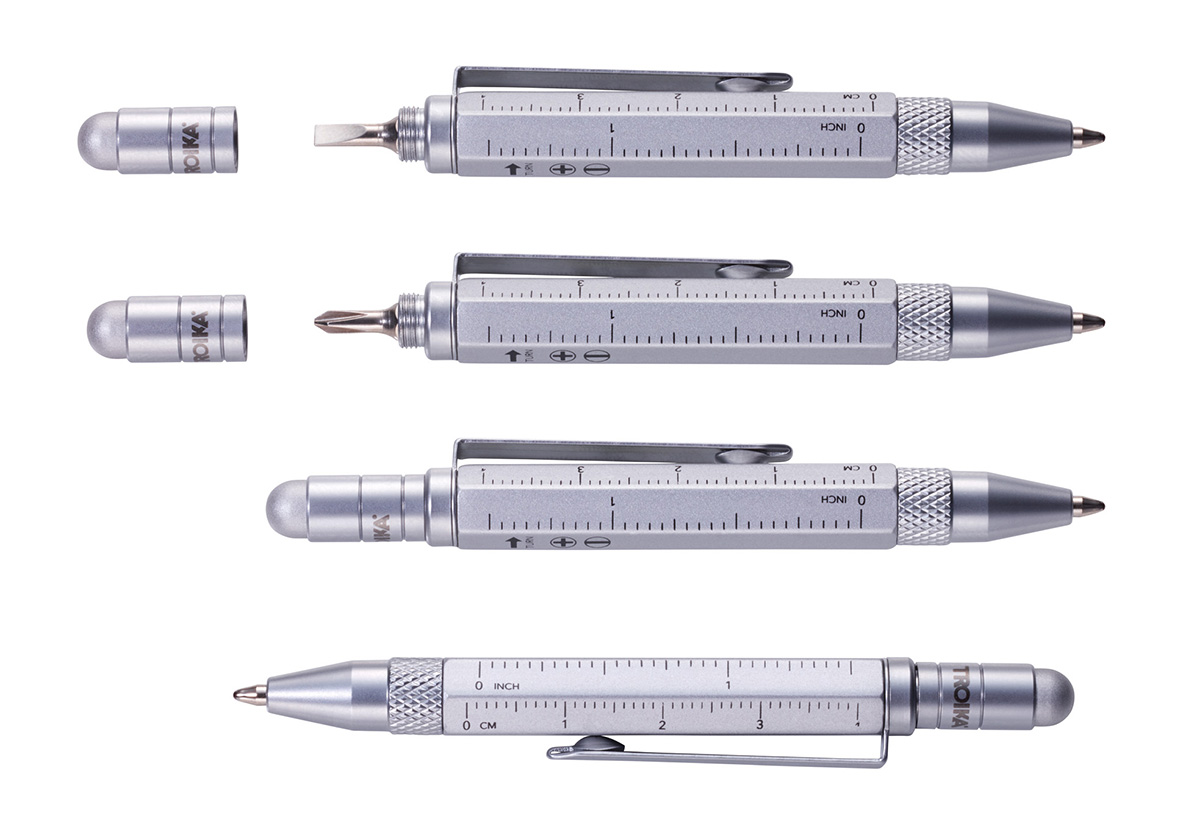 • wielofunkcyjny: linijka w centymetrach i calach, śrubokręt płaski i krzyżakowy, rysik do ekranów dotykowych, wkład w kolorze czarnym + 2 zapasowe wkłady