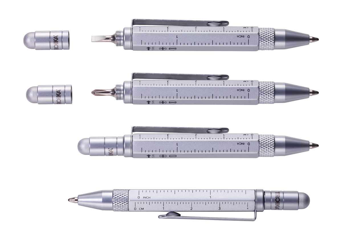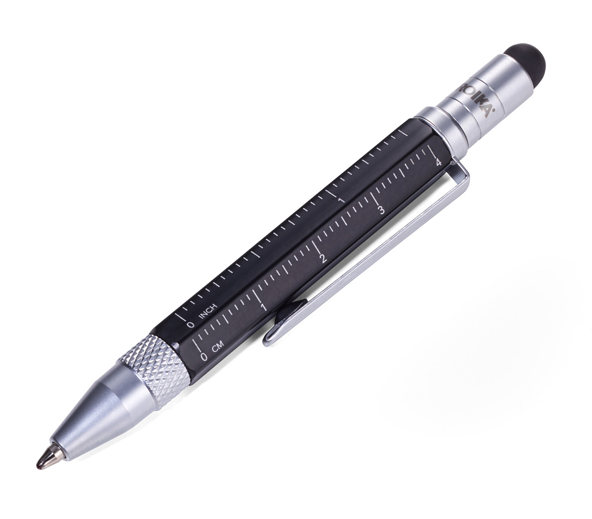 • wielofunkcyjny: linijka w centymetrach i calach, śrubokręt płaski i krzyżakowy, rysik do ekranów dotykowych, wkład w kolorze czarnym + 2 zapasowe wkłady