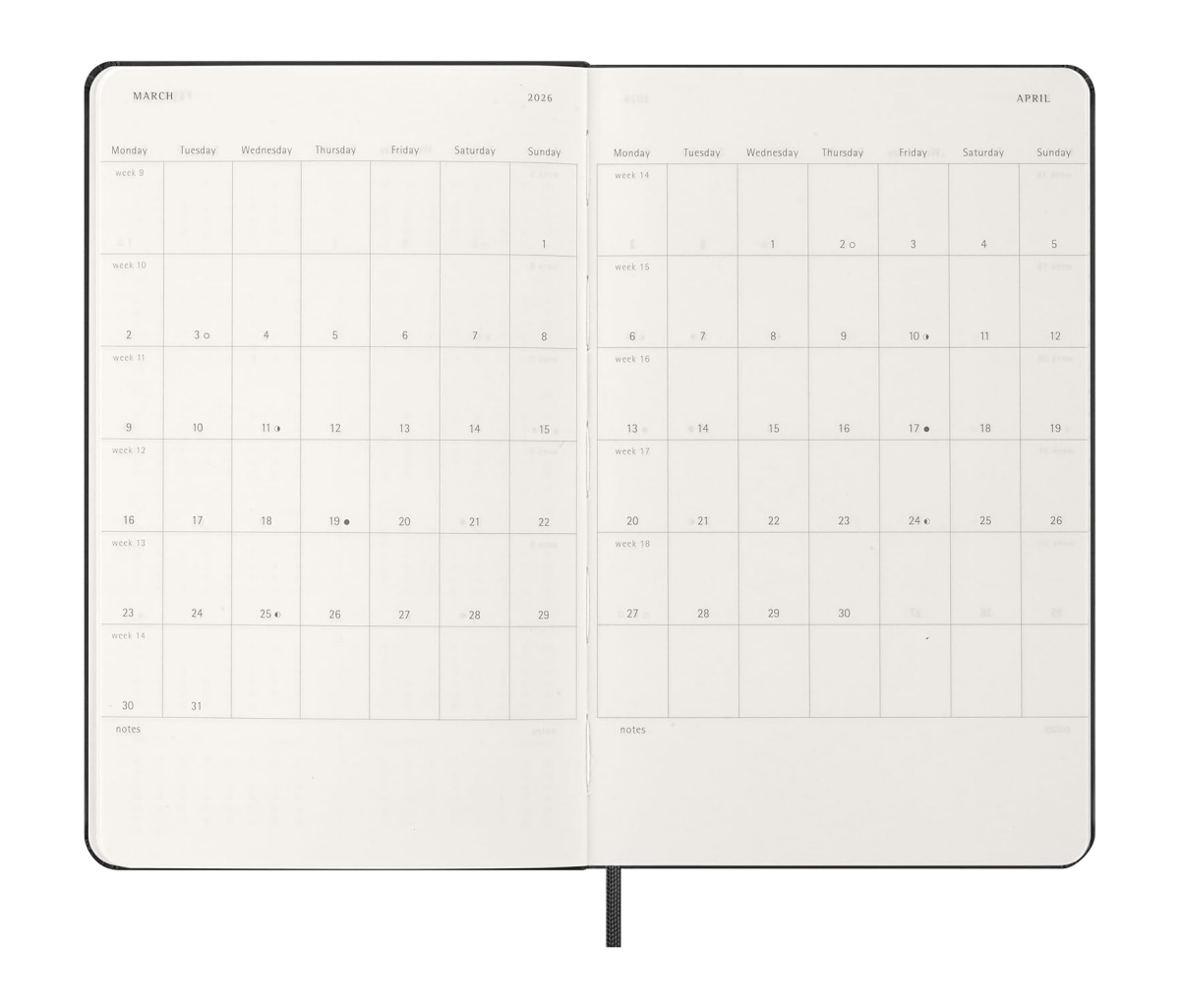 - weekly notebook Moleskine dated from January to December 2026