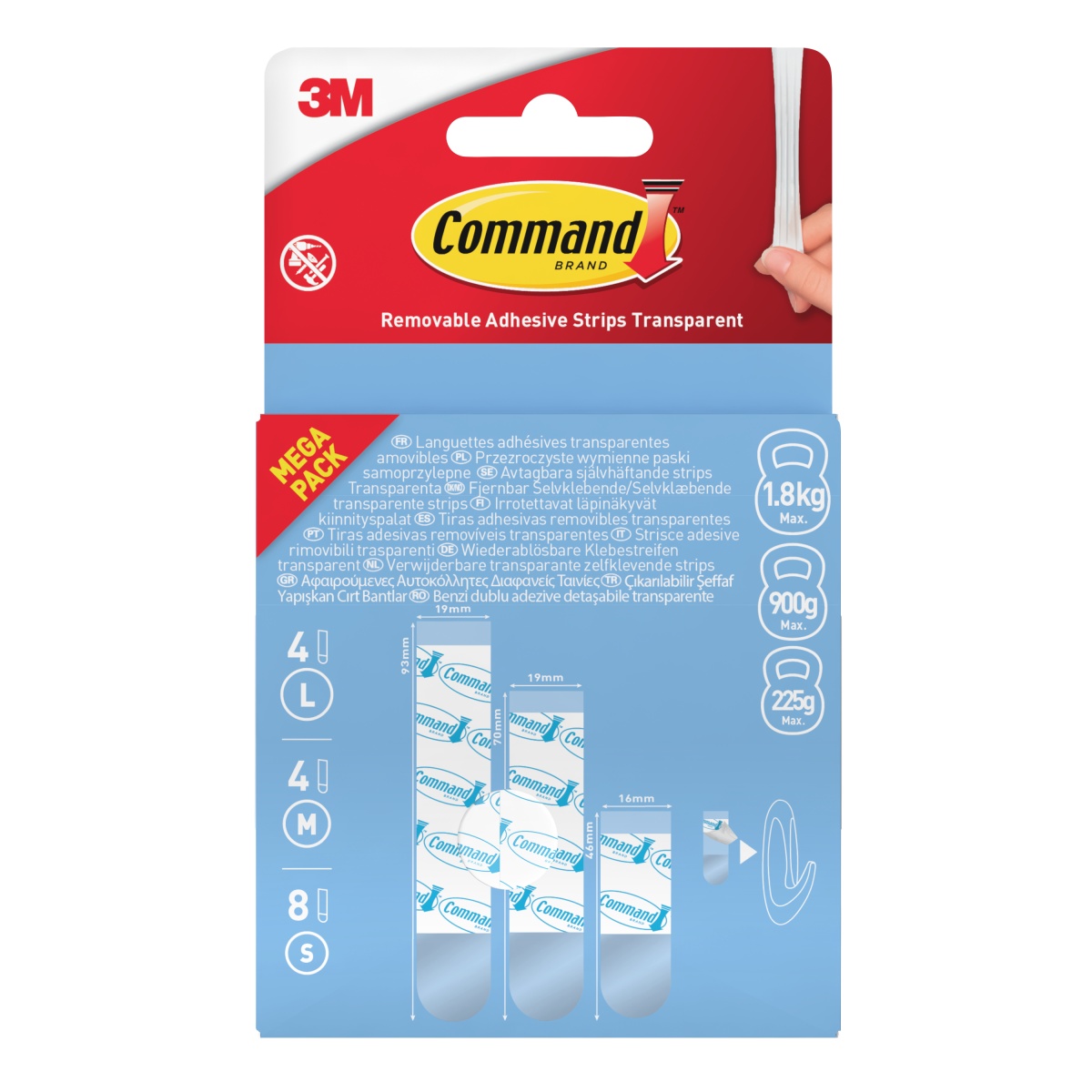 >Presentation>Hooks>Adhesive strips COMMAND™ (17200), replaceable, 4 large + 4 medium + 8 small, transparent