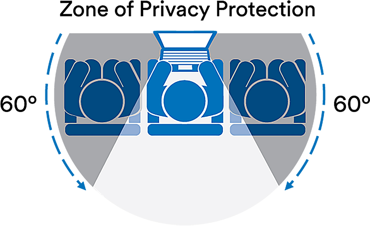 • skuteczny filtr prywatyzujący 3M™ zapewniający ochronę poprzez zaciemnienie ekranu i uniemożliwienie podglądania jego zawartości z boku (poza 60-stopniowym kątem widzenia)