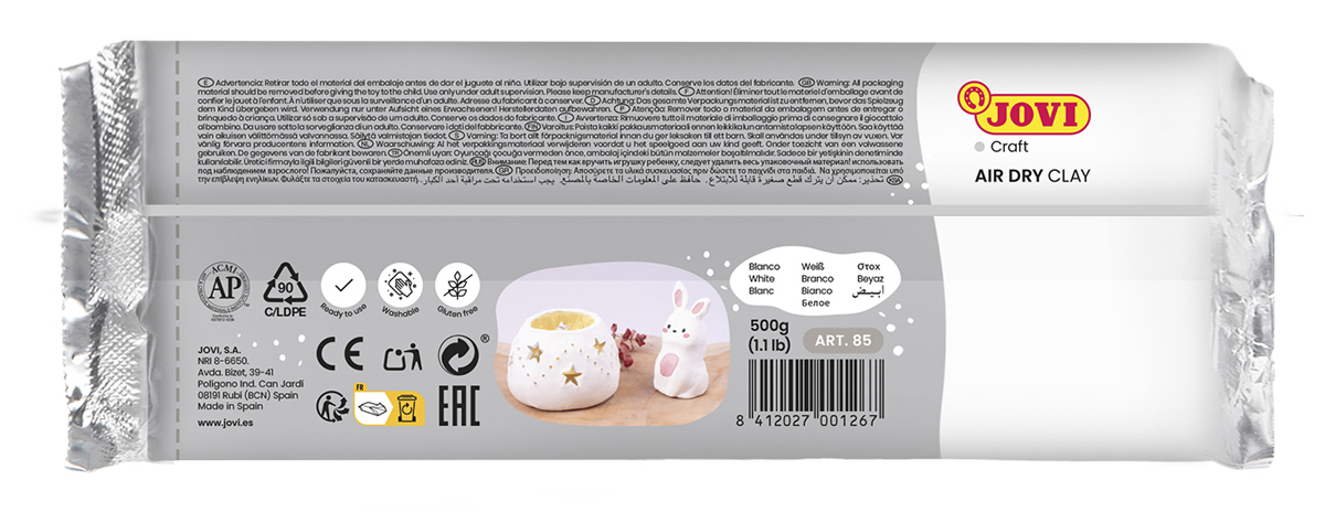• samoutwardzalna glinka JOVI to idealny materiał do kreatywnych projektów – gotowa do użycia, utwardza się bez wypiekania, z naturalnym składem i gładkim wykończeniem