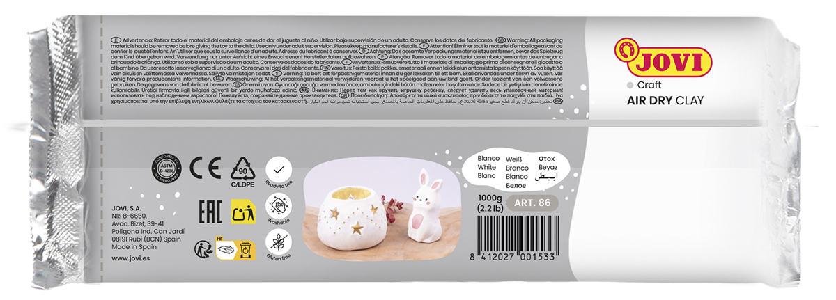 • samoutwardzalna glinka JOVI to idealny materiał do kreatywnych projektów – gotowa do użycia, utwardza się bez wypiekania, z naturalnym składem i gładkim wykończeniem