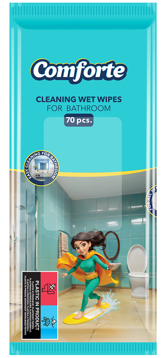 Chusteczki nawilżane COMFORTE, do łazienki, 70 szt., Środki czyszczące, Artykuły higieniczne i dozowniki NOWOŚĆ