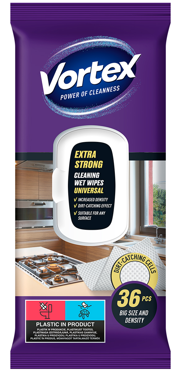 Chusteczki nawilżane VORTEX, uniwersalne, extra strong, z klapką, 36 szt., Środki czyszczące, Artykuły higieniczne i dozowniki NOWOŚĆ