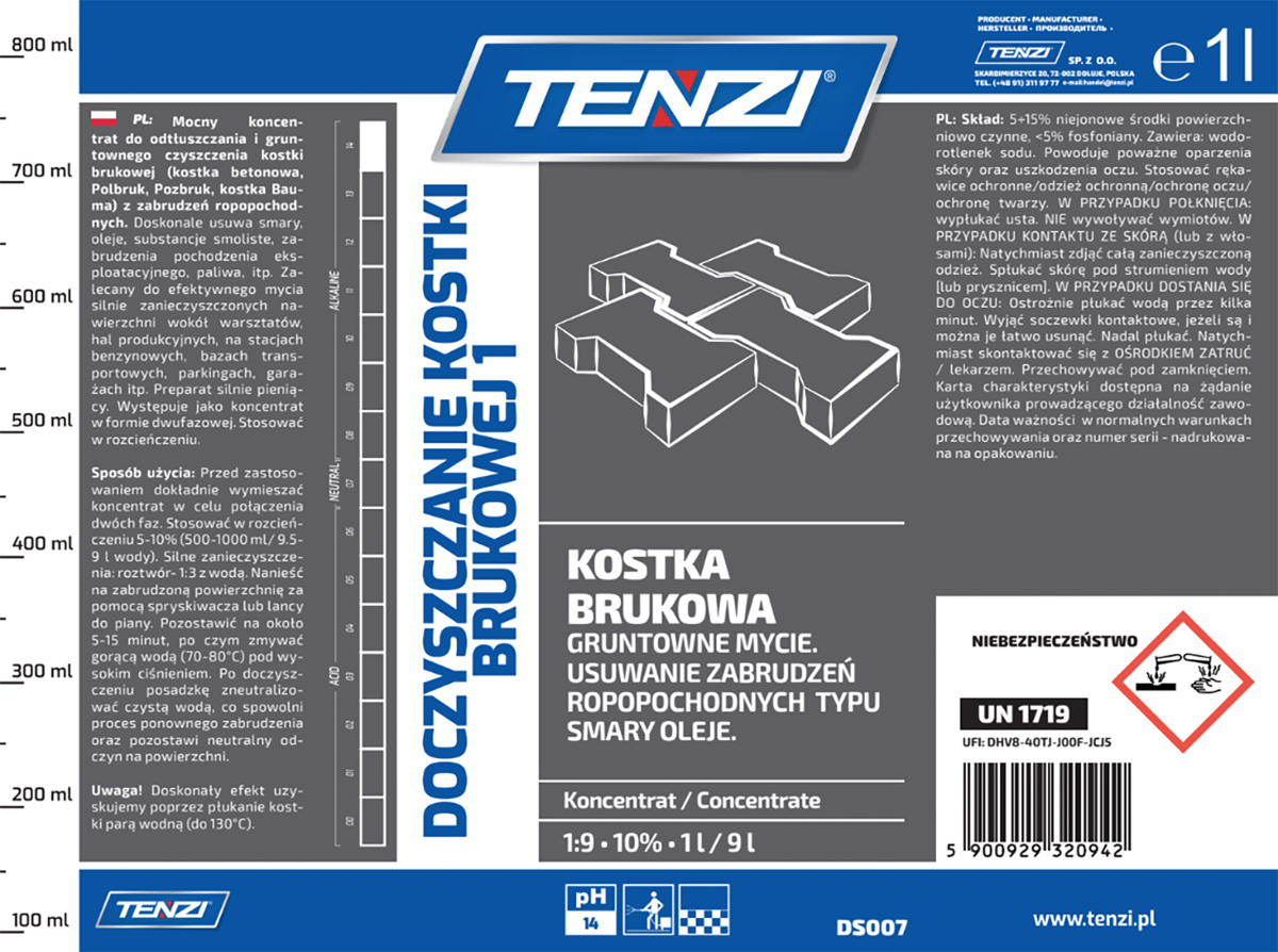 • Dwufazowy koncentrat do czyszczenia kostki brukowej TENZI, 1l, Środki czyszczące, Artykuły higieniczne i dozowniki