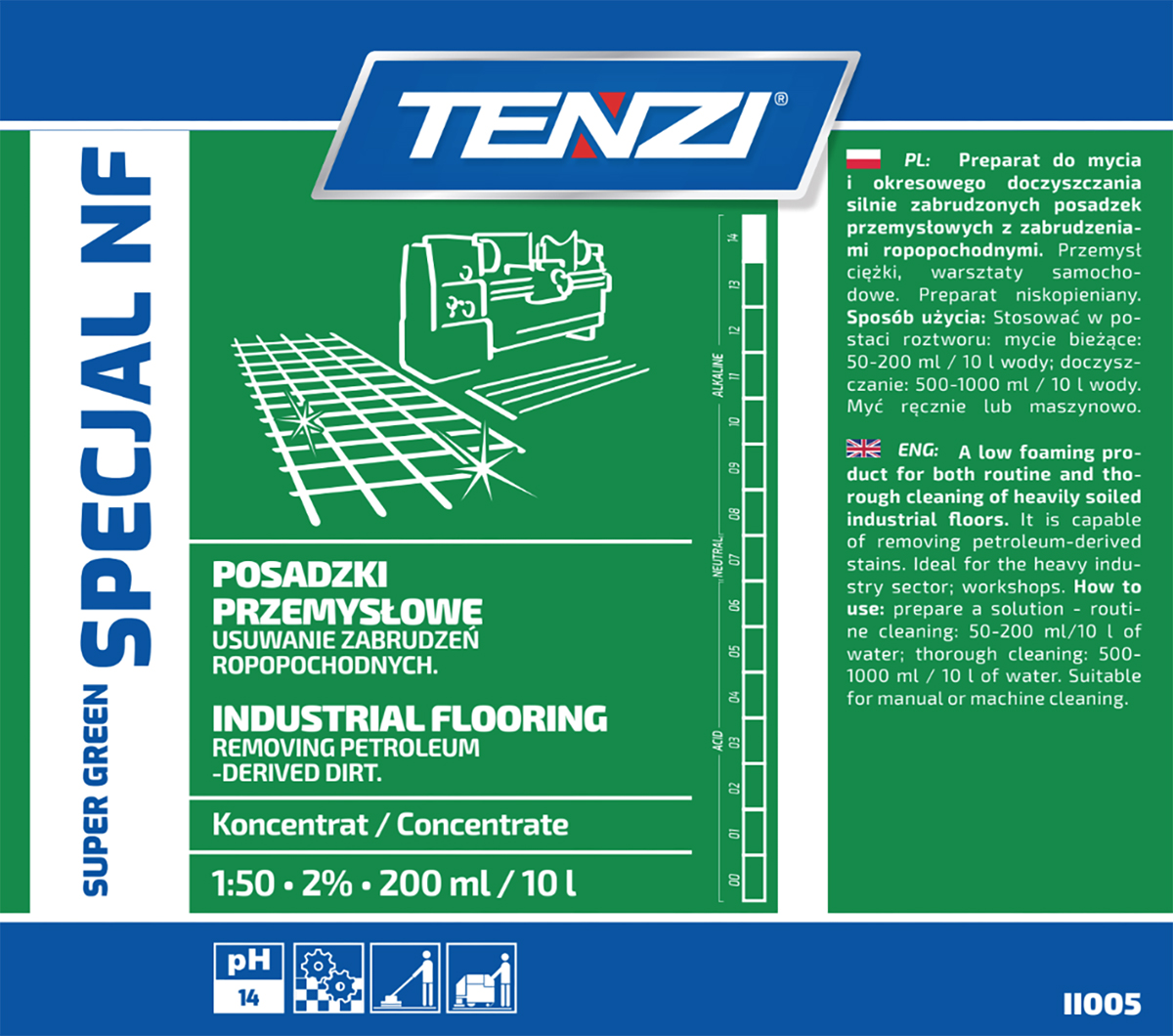 • zalecany do mycia silnie zanieczyszczonych posadzek przemysłowych z zabrudzeniami ropopochodnymi