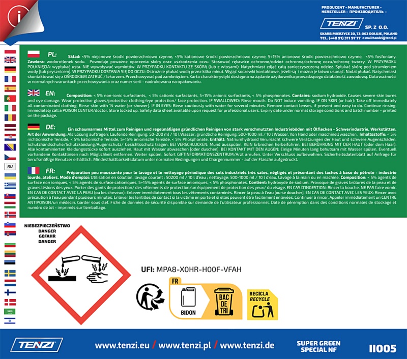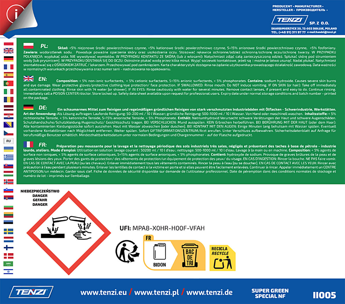 Nazwa produktuŚrodek do zabrudzeń organicznych TENZI, Super Green Specjal NF, 20l