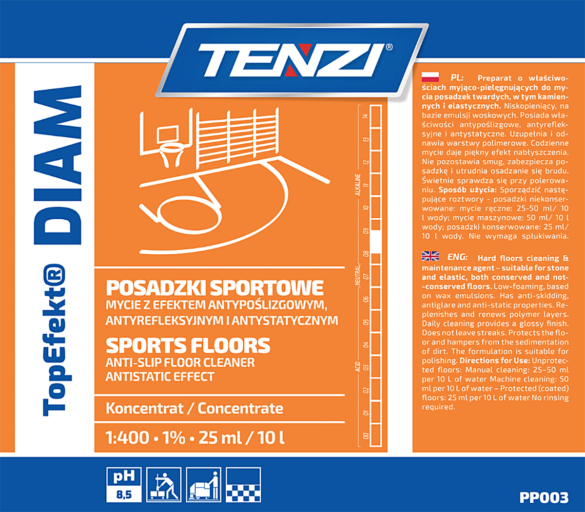 Nazwa produktuPłyn do mycia posadzek twardych i elastycznych TENZI, Topefekt Diam, 5l