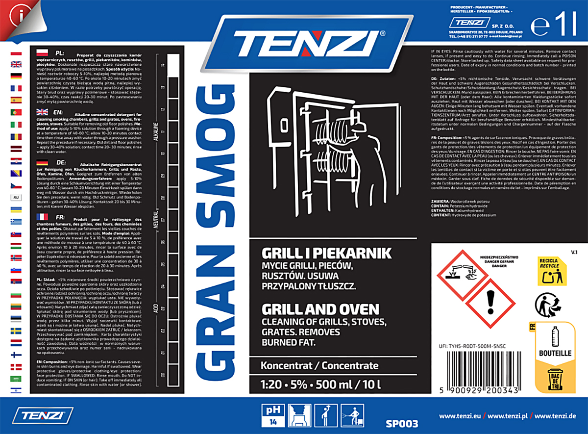 Nazwa produktuKoncentrat do usuwania tłuszczu, sadzy, smoły TENZI, Gran Smog, 1l