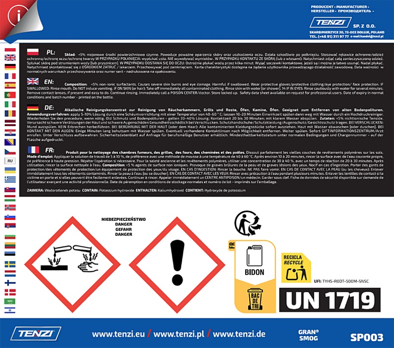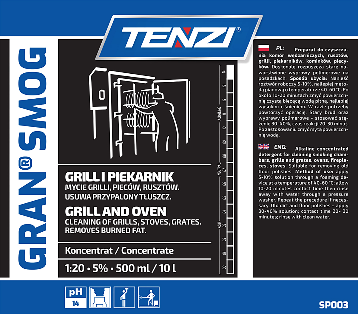 Nazwa produktuKoncentrat do usuwania tłuszczu, sadzy, smoły TENZI, Gran Smog, 5l