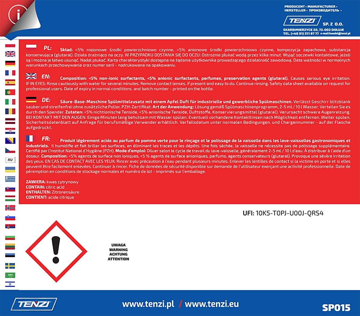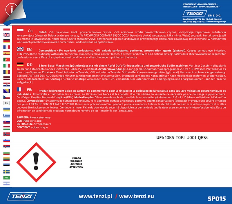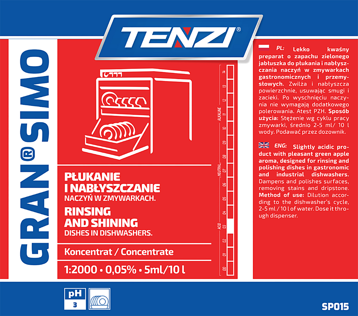 Nazwa produktuKoncentrat do nabłyszczania naczyń w zmywarkach TENZI, Gran Simo, 5l