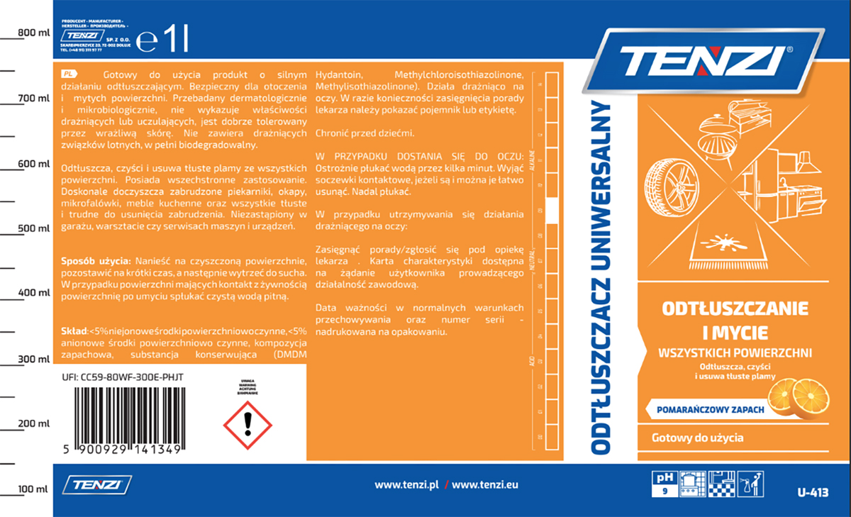 Nazwa produktuUniwersalny preparat do usuwania tłuszczu TENZI, zapach pomarańczy, 1l